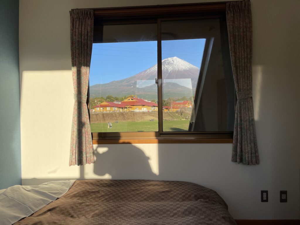 何より宿が良い。ホテルというより二階建てのコテージって感じで、朝に目を開けた瞬間から夜寝る直前までずっと富士山が視界に入ってる。これはオーストラリア時代のエアーズロックと似たようなものを感じた。このクソデカい山一つで一体どんだけの経済効果が…とか考えているうちに寝ちゃってるので普段寝付きが悪い人にもオススメですねえ。