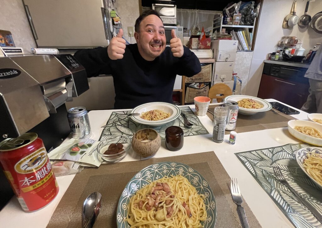 今まで食べたカルボナーラの中でダントツで一番美味かった。料理してくれたからっていうお世辞は一切無しで、これは本気でヤバかった。実際、パスタに死ぬほど五月蝿いイタリア人のウィンツもこれはマジで本気で上手く作れたらしく絶賛してたので間違いない。