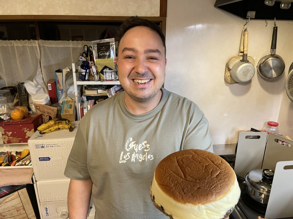 満面の笑顔で持っているチーズケーキは、大阪のお土産で「りくろーおじさんのチーズケーキ」だそう。俺は全く知らなかったんだけど、世界ではマジで有名らしい。世界では「大阪 = チーズケーキ」なんだな。